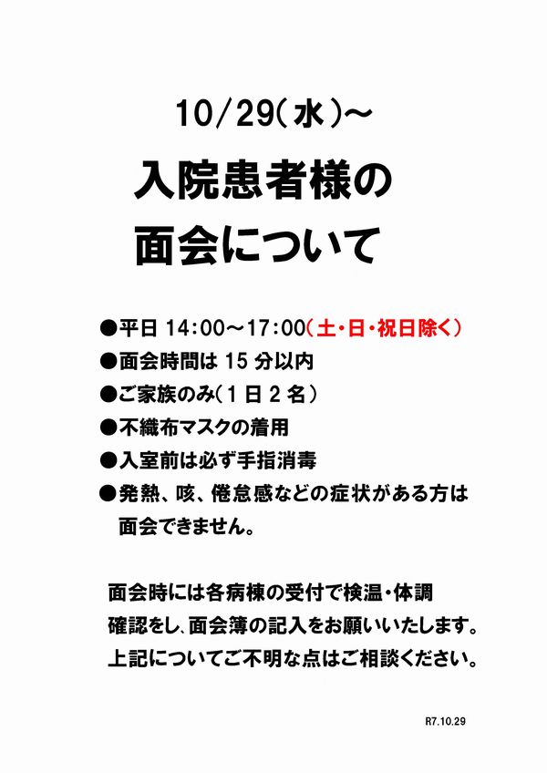 ・新型コロナウイルス感染症の対策、並びに入院患者様への面会について