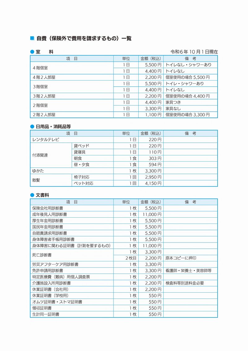 また、当院では下記のとおり療養の給付と直接関係ないサービス等の提供